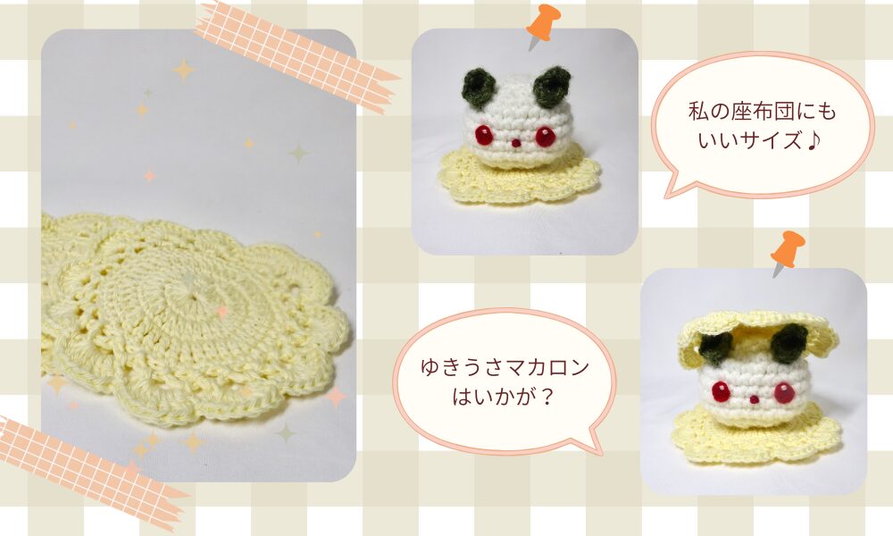 エコたわしと同様に編み方の練習もできてコースターとして使うことが出来て、余り糸を減らすことが出来る一石三鳥の方法です。